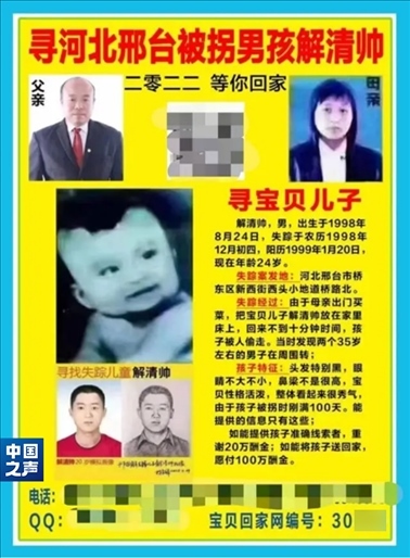 那是尋子25年的第一年。第一時(shí)間報(bào)警、發(fā)動(dòng)親友尋找,能想到的措施,解克鋒都用了。邢臺(tái)周邊、北京、河南,騎自行車、摩托車、坐火車,有一絲希望的地方,夫妻倆都去過?!氨M快找到孩子吧,再耽誤下去,孩子長(zhǎng)大變了模樣,從眼前走過也認(rèn)不出了”, 這是一個(gè)父親最深的恐懼。