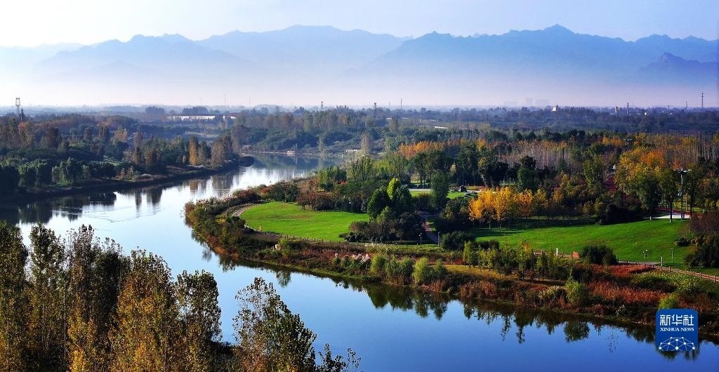 這是陜西西咸新區(qū)灃河兩岸景色(2023年10月15日攝,無(wú)人機(jī)照片)。近年來(lái),陜西西咸新區(qū)實(shí)施灃河綜合治理工程,治污、凈水、增綠等多措并舉,利用河流自然形態(tài)打造生態(tài)節(jié)點(diǎn),形成了“洪暢、堤固、水清、岸綠、景美、管理長(zhǎng)效”的河湖景象。新華社記者 劉瀟 攝