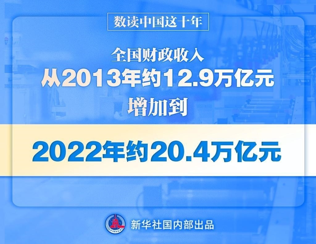 黨的十八大以來(lái),財(cái)政收入保持較快增長(zhǎng),全國(guó)財(cái)政收入從2013年的約12.9萬(wàn)億元增加到2022年的約20.4萬(wàn)億元。