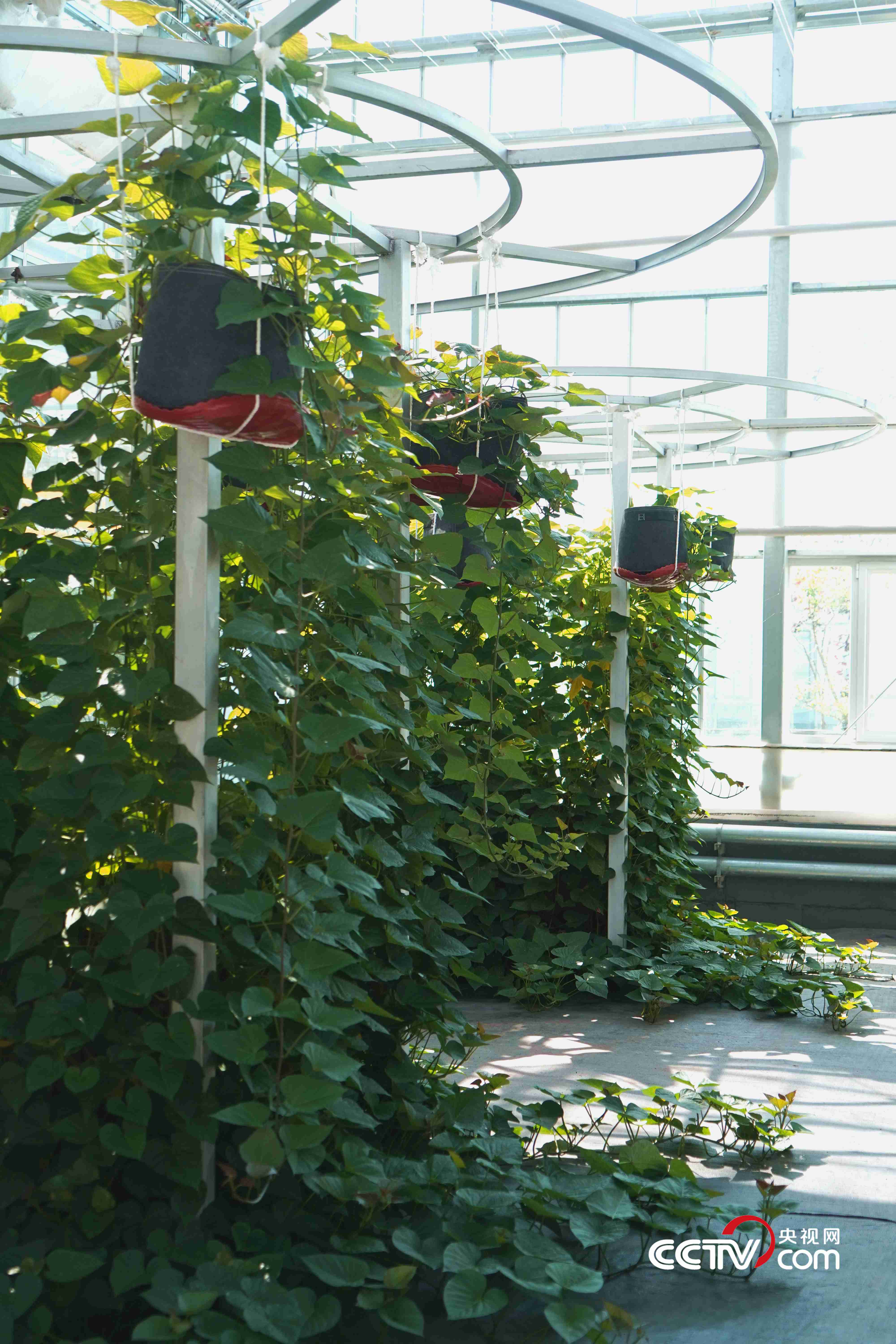 空中紅薯則利用深液流栽培模式,將紅薯由傳統(tǒng)的土壤栽培轉(zhuǎn)變?yōu)樗耘嗟哪J?。陸璐表示,其特點(diǎn)體現(xiàn)在水生根系能為植株提供充足的水肥,壓蔓產(chǎn)生的不定根成為儲(chǔ)藏根,實(shí)現(xiàn)了根系的分工合作,能夠達(dá)到一年種植多年采收的效果。“據(jù)測(cè)算,單株冠幅在60平方米的‘紅薯樹’一年可產(chǎn)1200多斤的紅薯。”這種栽培模式不僅能帶來(lái)經(jīng)濟(jì)效益,在農(nóng)業(yè)觀光、科普教育方面也有獨(dú)特價(jià)值。