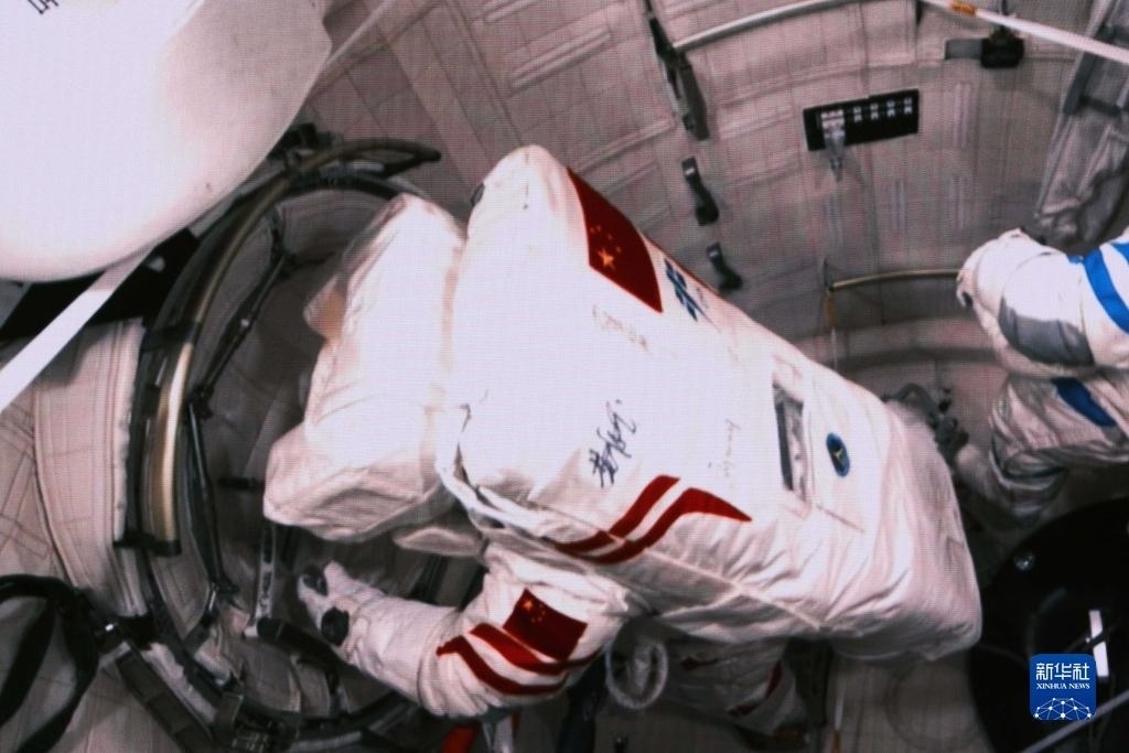 12月21日在北京航天飛行控制中心拍攝的神舟十七號航天員湯洪波開展艙外操作的畫面。新華社記者 李杰 攝