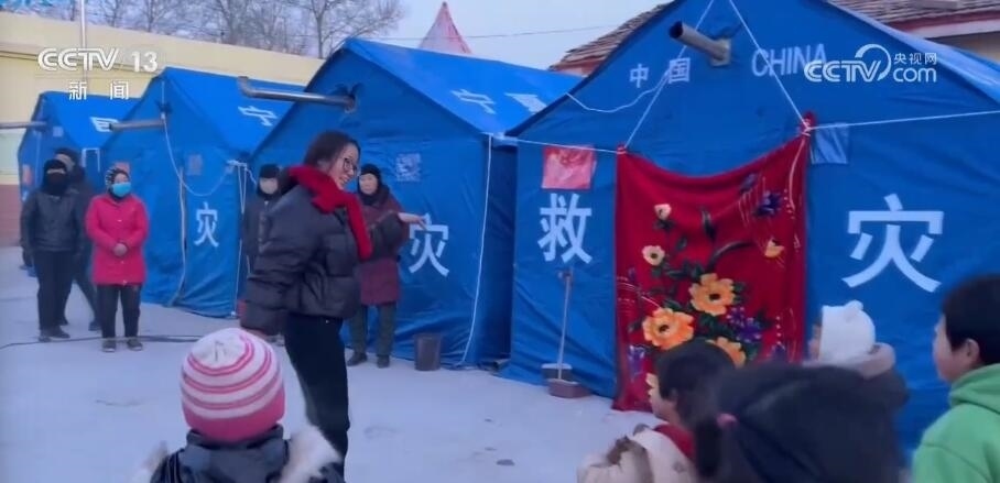 現(xiàn)在,臨時安置點搭建起一頂帳篷,作為學(xué)生們的“臨時帳篷課堂”,這會兒老師正在給孩子普及地震的相關(guān)知識和一些心理課程,并且?guī)е⒆觽冏龊唵蔚挠螒?,讓孩子在彼此的溝通和交流中舒緩心中的壓力,積蓄力量。