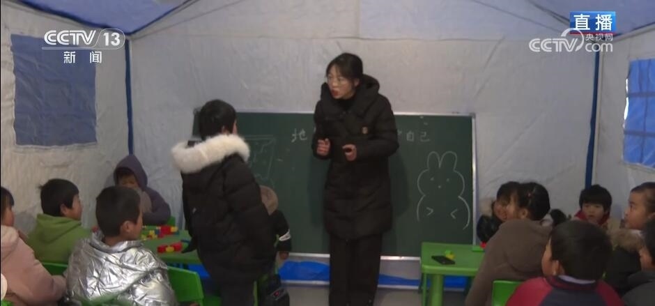 總臺記者 馬麗:我現(xiàn)在是在積石山縣前嶺小學(xué)附屬幼兒園。目前,這里也是前嶺村的一個集中安置點。地震發(fā)生后,這里的主體校舍沒有明顯受損,并且校內(nèi)廣場有大面積的空地,所以被作為了臨時安置點,來安置附近的40余名村民。其中,有近30名是小學(xué)生和幼兒園的小朋友。他們有些是村民自己的孩子,有些是附近親戚家的孩子??紤]到這里的環(huán)境更加穩(wěn)定和保暖,孩子們也被聚集到了這里?,F(xiàn)在,正是早起的時間,在安置點也升起了裊裊炊煙,陽光從遠(yuǎn)處照了過來。