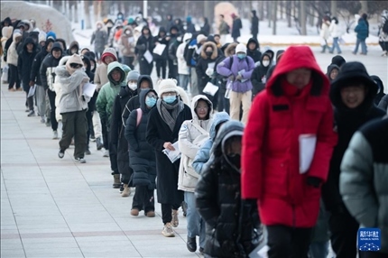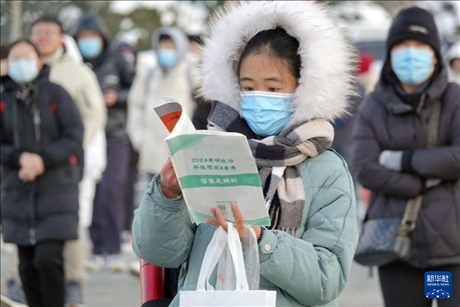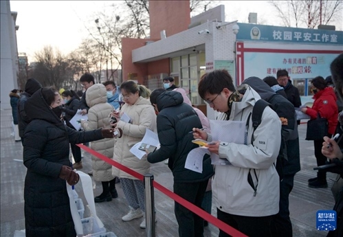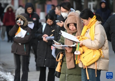 12月23日,在黑龍江省哈爾濱市,考生在哈爾濱理工大學(xué)考點(diǎn)排隊(duì)進(jìn)入考場。