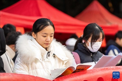 12月23日,在湖南省長沙市,考生在湖南農(nóng)業(yè)大學(xué)考點(diǎn)排隊(duì)時(shí)抓緊復(fù)習(xí)。