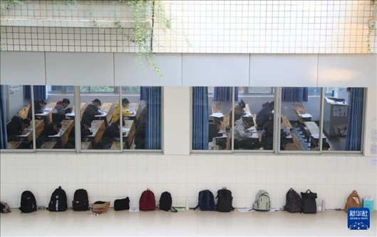 12月23日,考生在安徽省合肥45中橡樹灣校區(qū)考點(diǎn)外等待。
