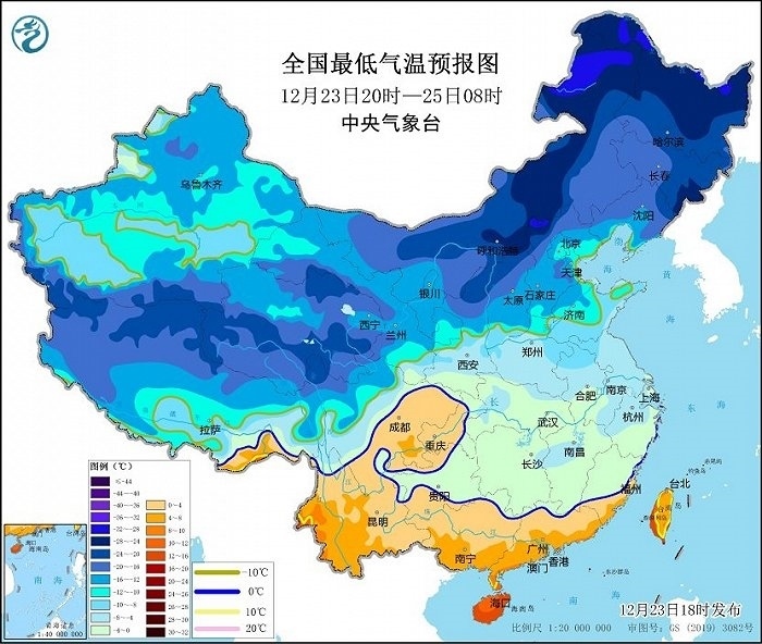央視網(wǎng)消息:據(jù)中央氣象臺網(wǎng)站消息,中央氣象臺12月23日18時繼續(xù)發(fā)布低溫藍色預(yù)警:預(yù)計,23日20時至25日08時,江淮、江南、華南以及山東西北部和半島地區(qū)、河北南部和西北部、山西北部、陜西北部等地日最低氣溫較歷史同期偏低5~7℃,其中浙江中部、江西中部等地偏低7℃以上,最低氣溫0℃線將位于貴州南部至華南北部一帶。