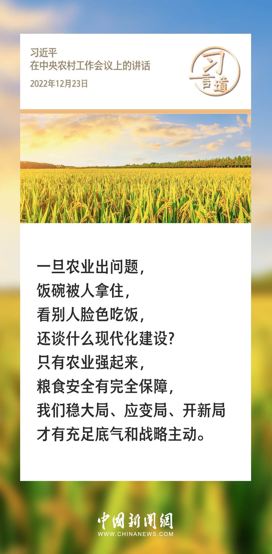 農(nóng)為邦本,本固邦寧。習(xí)近平總書(shū)記多次在不同場(chǎng)合就“三農(nóng)”工作發(fā)表重要講話、作出重要部署,始終堅(jiān)持把解決好“三農(nóng)”問(wèn)題作為全黨工作的重中之重。