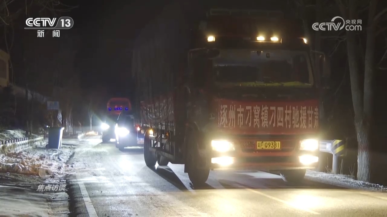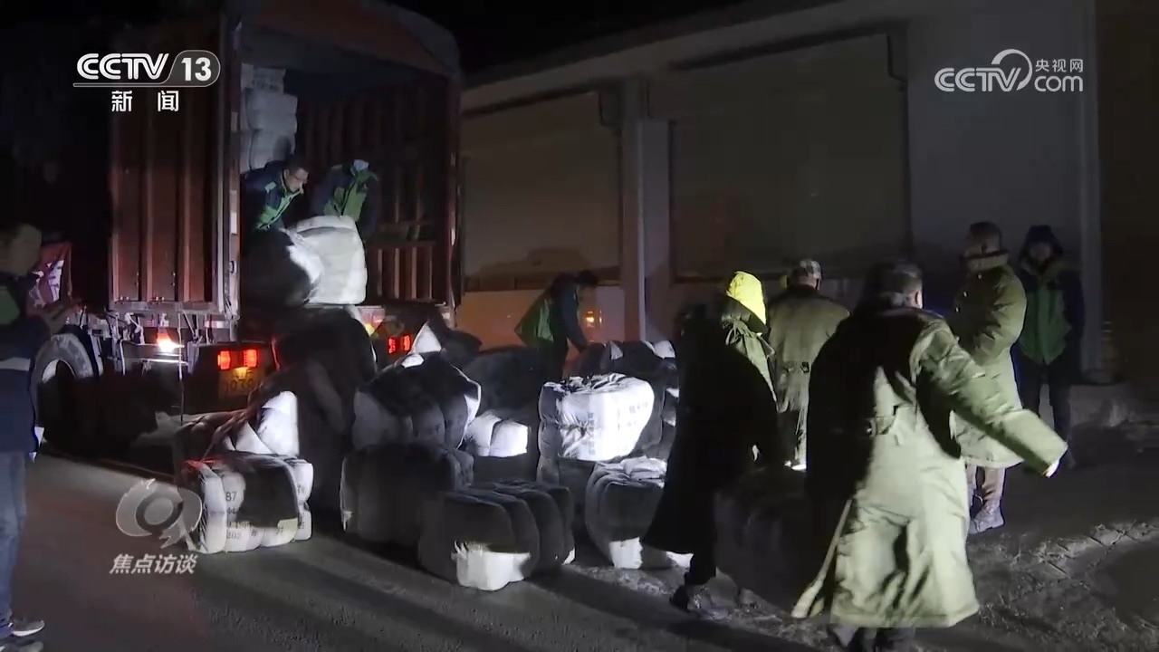 為了盡快給村民送去保障物資,刁四村村民的車隊日夜兼程。22日凌晨,歷經(jīng)32個小時,帶著全村2000多人的囑托,這個車隊跨越1600公里,終于抵達了積石山縣的安集鎮(zhèn)。顧不上休息,刁四村的村民就和當(dāng)?shù)卮迕褚黄鸢沿浳镄读讼聛怼N遘囄镔Y,足足卸了三個小時,其中包括2400件軍大衣、2580件棉被、1820副自發(fā)熱鞋墊。