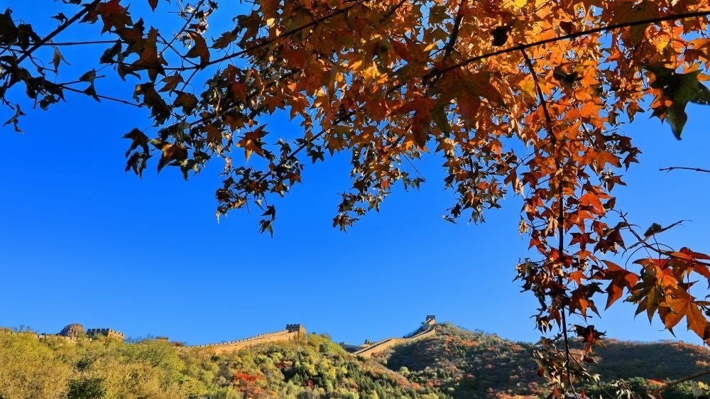 北京八達嶺長城秋色(2021年10月27日攝)。