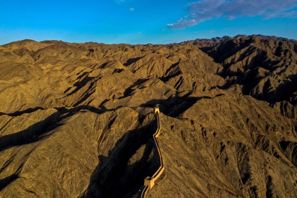 這是在甘肅省嘉峪關市拍攝的懸壁長城(無人機照片,2023年7月15日攝)。