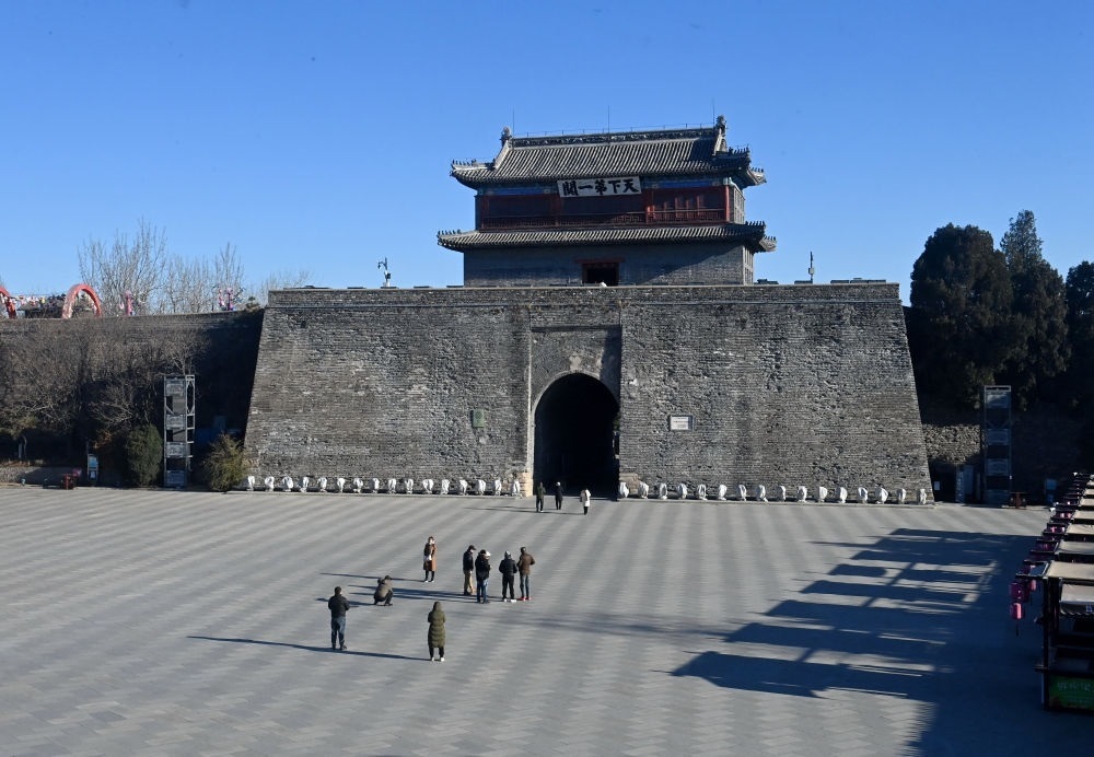 游客在河北省秦皇島市山海關區(qū)天下第一關景區(qū)游覽(2023年11月29日攝)。