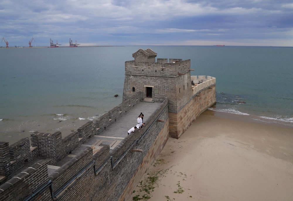 游客在河北省秦皇島市山海關老龍頭景區(qū)觀光(2022年6月6日攝)。