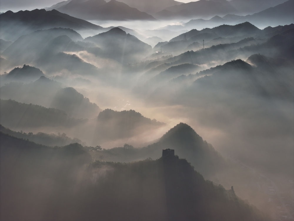 晨曦中的古北口長城(2023年9月28日攝)。