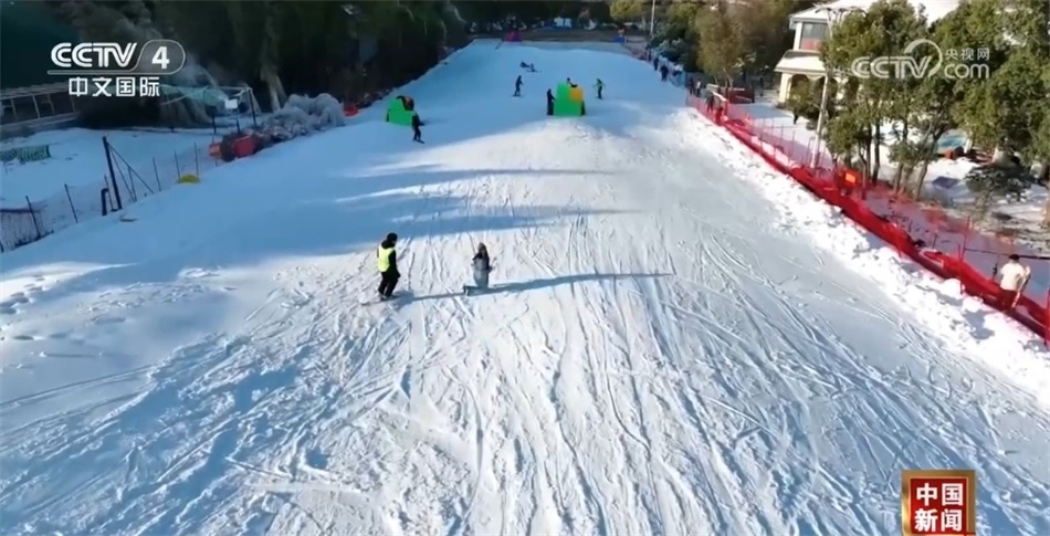 在連云港東海森林溫泉滑雪場,記者看到,100多米長的滑雪坡道頂峰處,許多游客在雪道上來回穿梭,體驗(yàn)著滑雪運(yùn)動帶來的樂趣,感受著別樣的“速度與激情”。