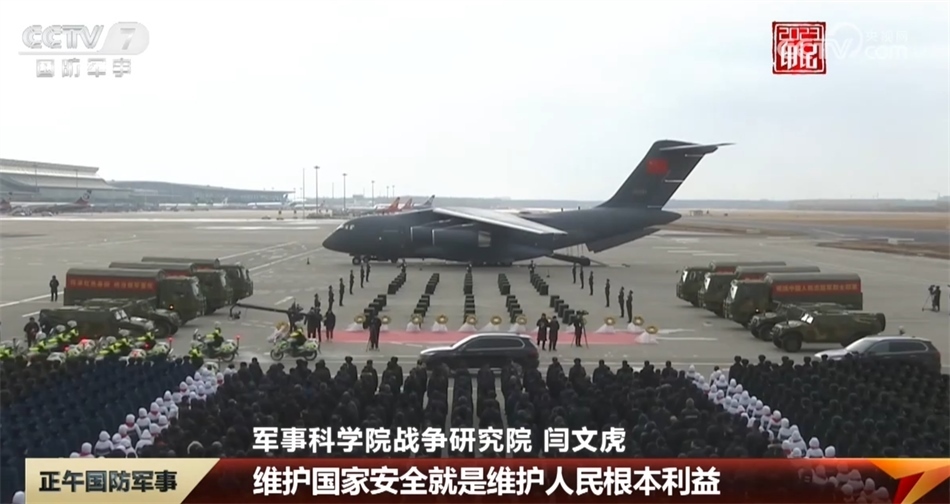 守護國防安全,我們每個人都是衛(wèi)士。今年11月,我們第十次迎回了抗美援朝保家衛(wèi)國的烈士遺骸。11月23日上午,遼寧沈陽桃仙國際機場,兩架殲-20戰(zhàn)機護航運-20運輸機呼嘯而來,運-20降落,緩緩通過水門,以最高禮儀致敬英烈。