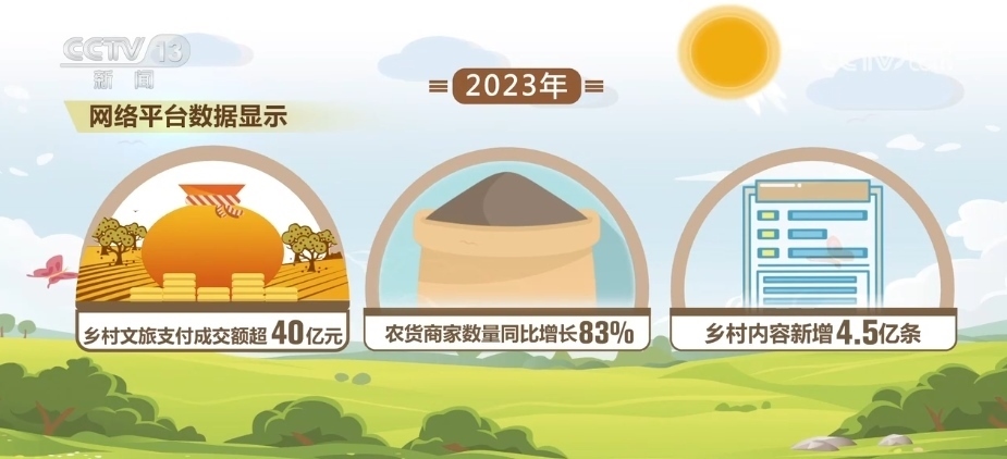 相關(guān)網(wǎng)絡(luò)平臺數(shù)據(jù)顯示,2023年,鄉(xiāng)村文旅支付成交額超40億元,農(nóng)貨商家數(shù)量同比增長83%,鄉(xiāng)村內(nèi)容新增4.5億條。數(shù)字技術(shù)和平臺在鄉(xiāng)村電商、鄉(xiāng)村文旅、鄉(xiāng)村人才等方面發(fā)揮了重要作用。