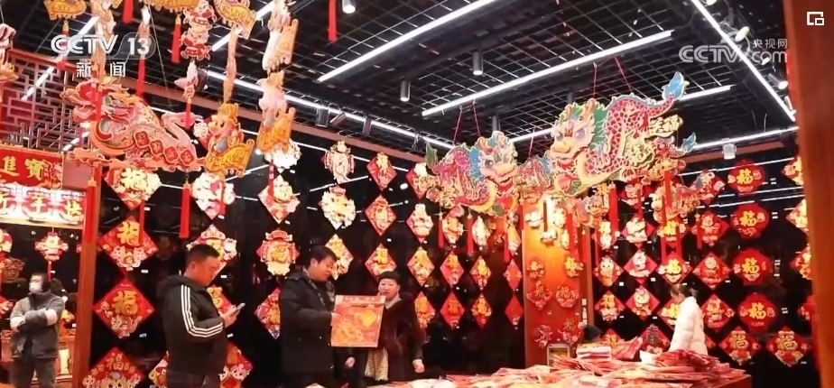 在浙江義烏國(guó)際商貿(mào)城,來自全國(guó)各地的采購(gòu)商們抓緊選購(gòu)著年貨。市場(chǎng)里的龍?jiān)禺a(chǎn)品頗受客商們歡迎,對(duì)聯(lián)、年畫、福字、紅包等產(chǎn)品,將從浙江義烏發(fā)往全球各地。