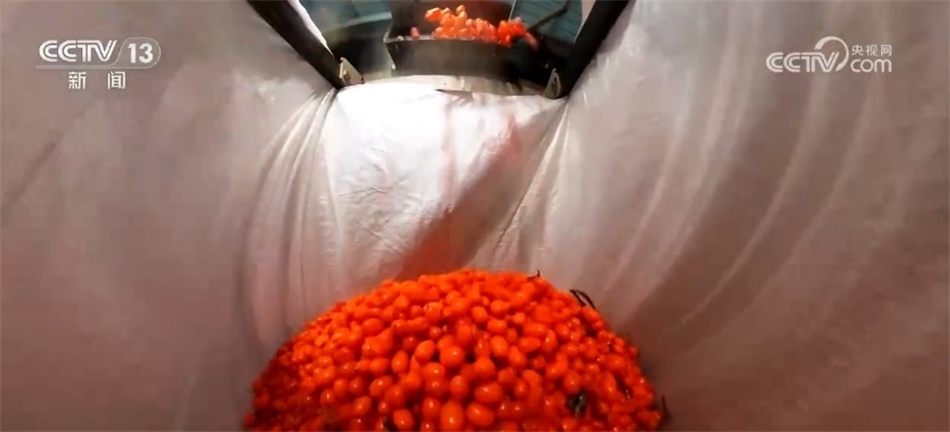 沙棘果送到工廠(chǎng)加工,而被分離出來(lái)的枝條也會(huì)被進(jìn)一步利用。