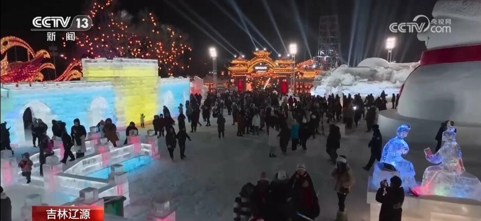 在吉林遼源,夜幕剛剛降臨,城市就被璀璨的燈火點(diǎn)亮。當(dāng)?shù)匕阎袊鴤鹘y(tǒng)元素和冰雪相融合,推出大型夜游冰雪主題樂園,吸引很多游客沉浸式體驗(yàn)冰雪魅力。置身3萬平方米的冰雪主題樂園里,既有年年有余、萬馬奔騰等中國節(jié)慶元素的雪雕,也有晶瑩剔透、絢麗多彩的各類大型冰雕。園區(qū)里還專門在雪地上搭起動(dòng)感、炫彩的舞臺(tái),引領(lǐng)游客們一起互動(dòng)。