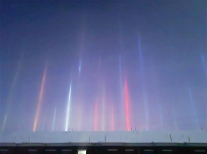內(nèi)蒙古額爾古納市出現(xiàn)“光柱”奇觀(guān),如夢(mèng)似幻。據(jù)悉,“光柱”現(xiàn)象是由于極寒天氣空氣中的冰晶反射燈光形成的自然奇觀(guān)。