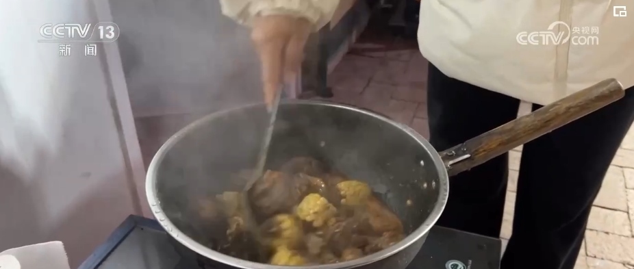 2023年12月31日晚上,孩子們的笑聲、小呲花的噼啪聲點(diǎn)燃了積石山縣劉集鄉(xiāng)團(tuán)結(jié)村安置點(diǎn)過(guò)節(jié)的氛圍。電視打開了,安置點(diǎn)的群眾圍著篝火一起看跨年晚會(huì)。而此時(shí),婦女們也在忙著,燉牛肉、包餃子、炸果子,香氣在安置點(diǎn)彌漫開來(lái)。