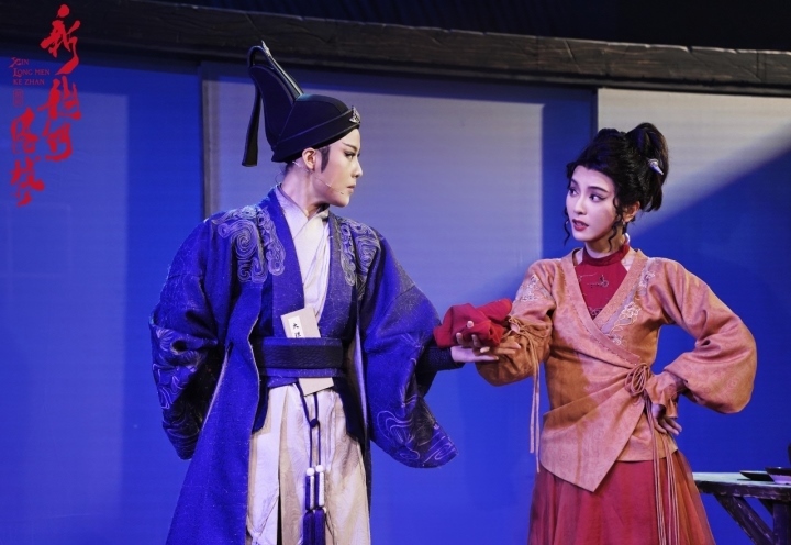這的確是一出“反套路”的越劇。論劇情,它由著名武俠電影《新龍門客棧》改編而來;論班底,劇目從導演、編劇到演員,基本是85后、95后,可謂年輕人懂年輕人的世界;最特別的是演出形式,用孫鈺熙的話說“演出沒有臺上臺下之分”,沒了高而遙遠的戲臺,觀眾和演員之間是揮個衣袖都能感受到風的距離。