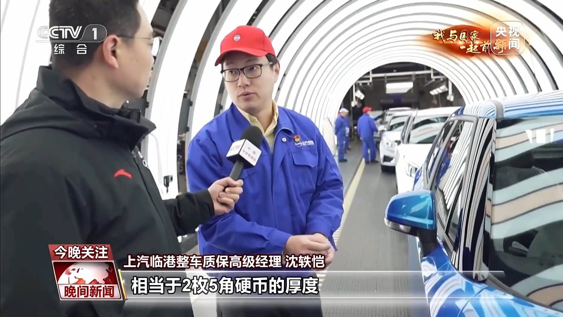 上汽臨港整車質(zhì)保高級經(jīng)理 沈軼愷:比如我們對于車門的縫隙控制,都有嚴格的質(zhì)量控制,確保它們拼合在一起是均勻的一致的。每條縫只有4毫米的間隙,相當(dāng)于2枚5角硬幣的厚度。