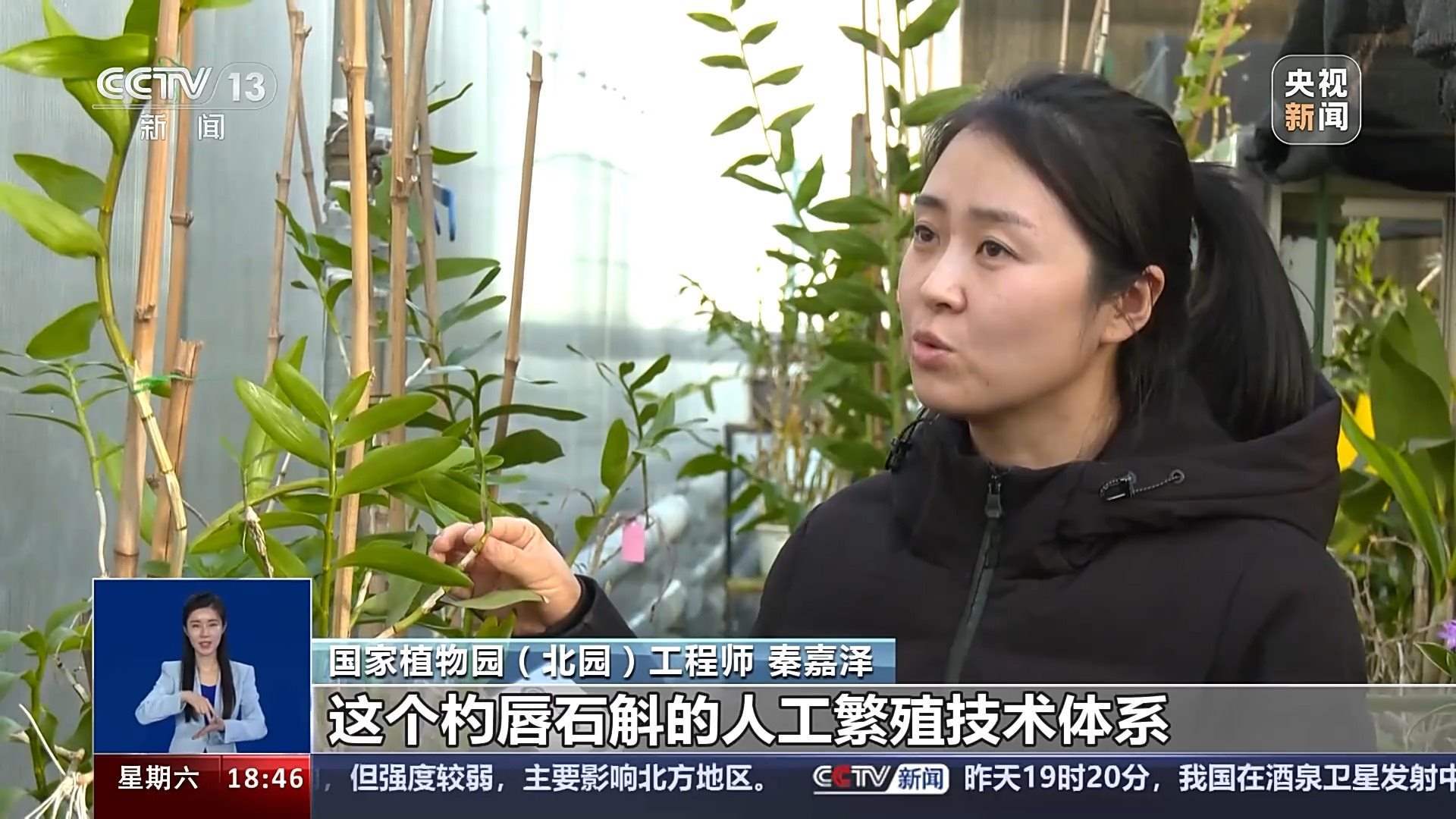 國家植物園(北園)工程師 秦嘉澤:它在野外是屬于瀕危的一個(gè)狀態(tài),當(dāng)下,我們已經(jīng)成功建立了這個(gè)杓唇石斛的人工繁殖技術(shù)體系,然后也成功繁育出了1000多株幼苗。