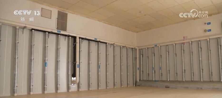 當(dāng)工作人員打開這座暫時(shí)空著的倉(cāng)庫(kù)時(shí),墻壁上的一排排管道十分搶眼。天氣熱的時(shí)候,這四面墻的氣道里都會(huì)充入冷空氣,再加上頂部的風(fēng)道,這“五面立體動(dòng)態(tài)控溫技術(shù)”就相當(dāng)于給糧倉(cāng)內(nèi)外加了一道隔離帶,低溫保鮮。