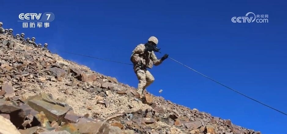 新疆軍區(qū)某團 黃文津:在下滑過程中制動手一定要將繩子抓住,同時也要注意后方落石及腳下石頭,以免發(fā)生摔傷,是否清楚?