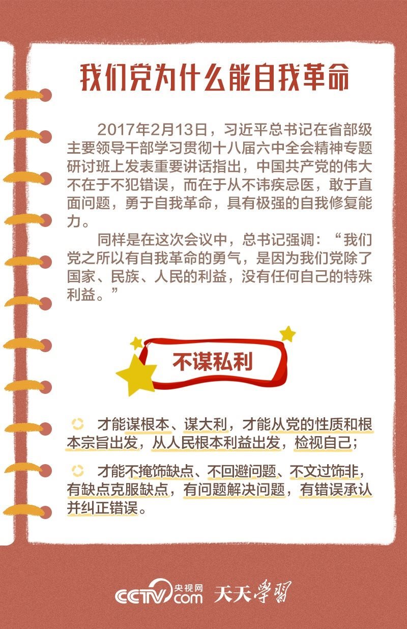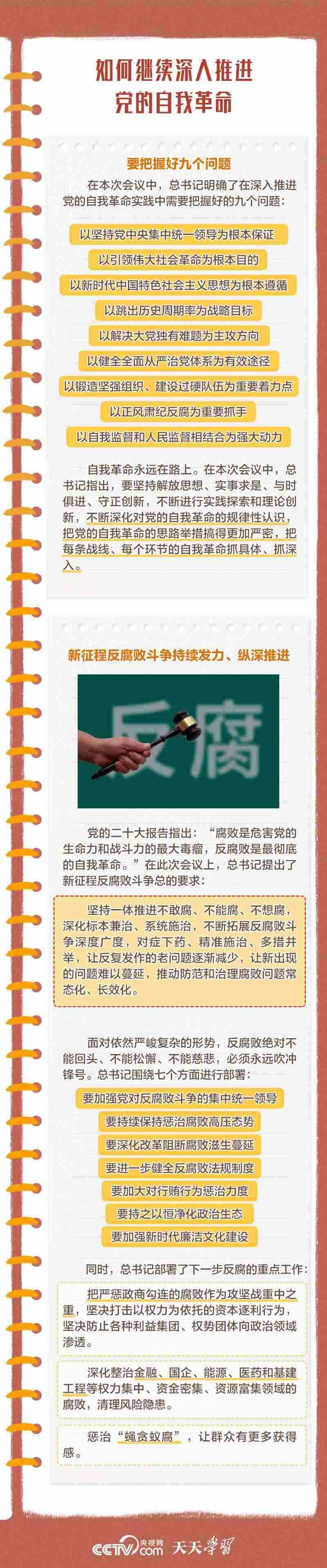 勇于自我革命是我們黨最鮮明的品格和最大的優(yōu)勢,總書記多次對推進黨的自我革命作出重要部署。此次會議上,總書記深刻闡述了黨的自我革命的重要思想,明確提出需要把握好九個問題,并對持續(xù)發(fā)力、縱深推進反腐敗斗爭作出戰(zhàn)略部署。央視網(wǎng)《天天學習》與您一起學習。