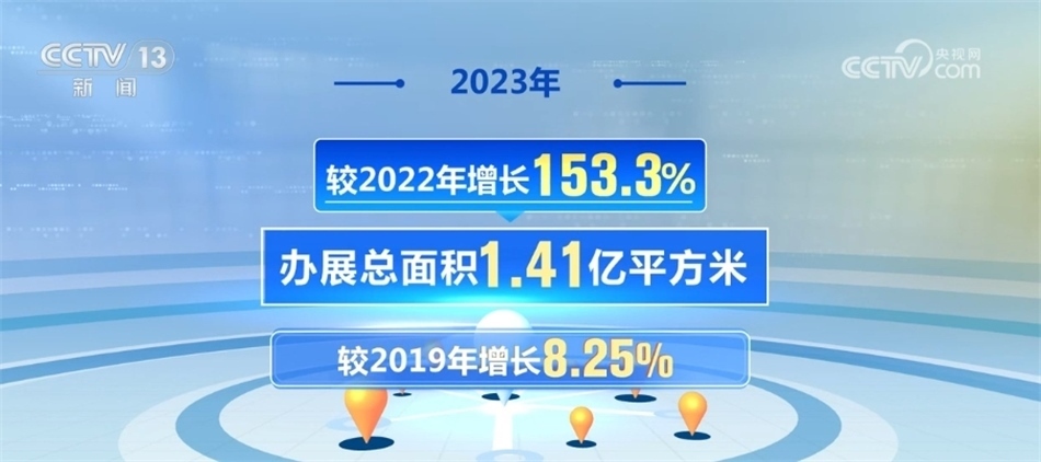 《中國(guó)展覽經(jīng)濟(jì)發(fā)展報(bào)告2023》統(tǒng)計(jì)數(shù)據(jù)顯示,2023年中國(guó)共舉辦經(jīng)貿(mào)類展會(huì)3923場(chǎng),較2022年增長(zhǎng)117.1%,較2019年增長(zhǎng)10.6%;辦展總面積1.41億平方米,較2022年增長(zhǎng)153.3%,較2019年增長(zhǎng)8.25%。經(jīng)貿(mào)類展會(huì)數(shù)量和展出面積超越疫情前水平,展覽業(yè)呈現(xiàn)全面恢復(fù)態(tài)勢(shì)。