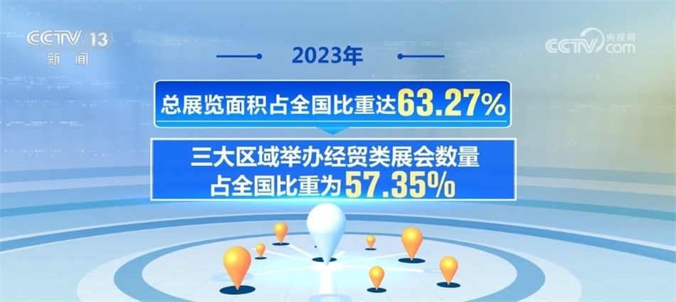 中國(guó)貿(mào)促會(huì)展覽管理部部長(zhǎng) 鄔勝榮:從區(qū)域分布來看,展會(huì)分布呈現(xiàn)明顯的區(qū)域性特征,東部地區(qū)舉辦經(jīng)貿(mào)類展覽項(xiàng)目、數(shù)量和面積均領(lǐng)跑全國(guó),全國(guó)占比分別為68.26%和73.53%。