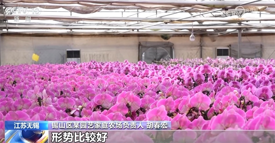 在江蘇無錫錫山國家現(xiàn)代農業(yè)產業(yè)園的花卉中心,各家花卉門店前迎來一波波的買花人,蝴蝶蘭、大花蕙蘭、紅掌、仙客來等烘托喜慶氛圍的鮮花受到人們的喜愛。
