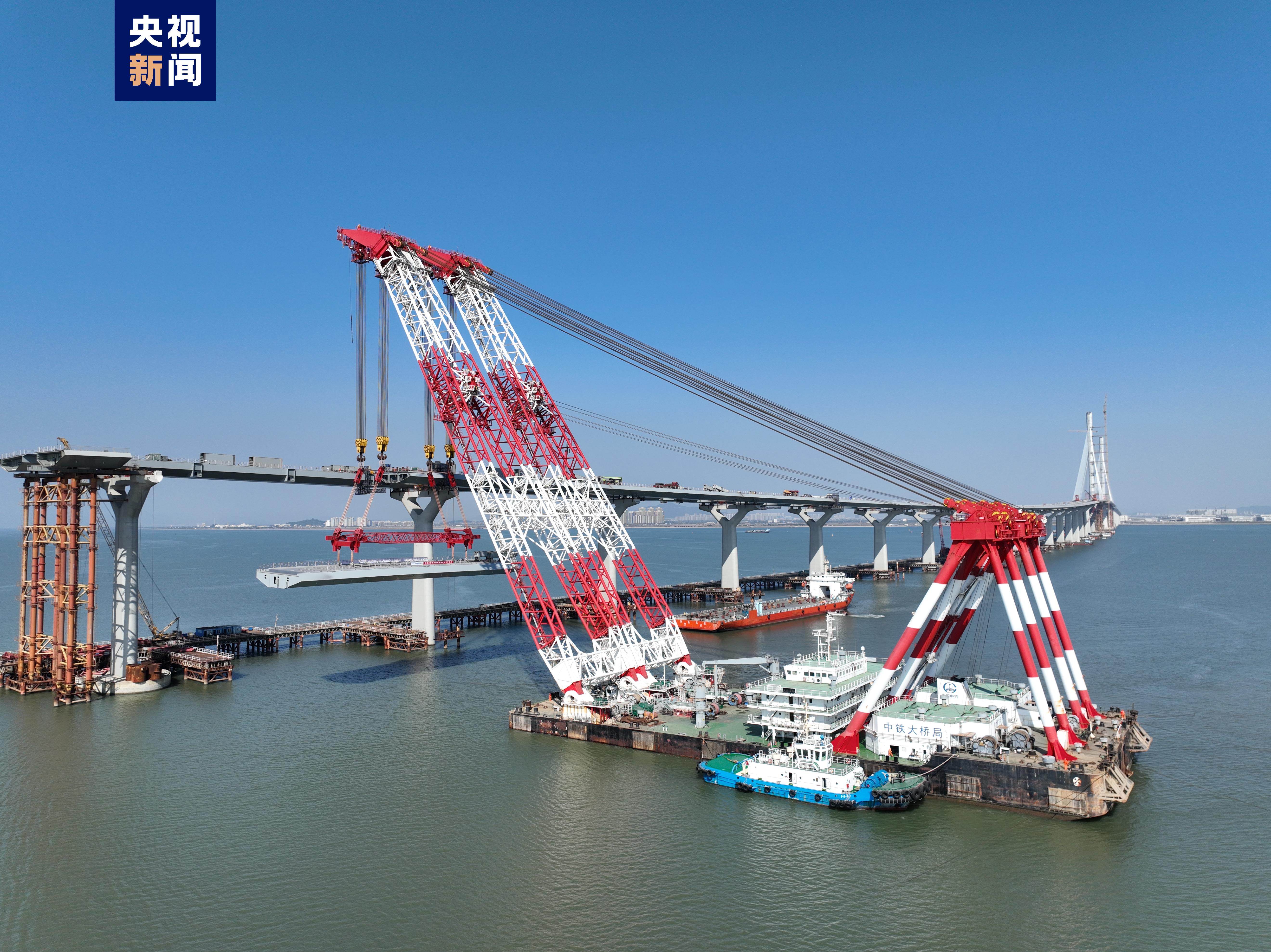 1月15日下午,隨著最后一片鋼箱梁架設(shè)到位,黃茅??绾Mǖ乐幸龢蝽樌淆?。兩座海上主橋——黃茅海大橋與高欄港大橋成功完成海上“牽手”。