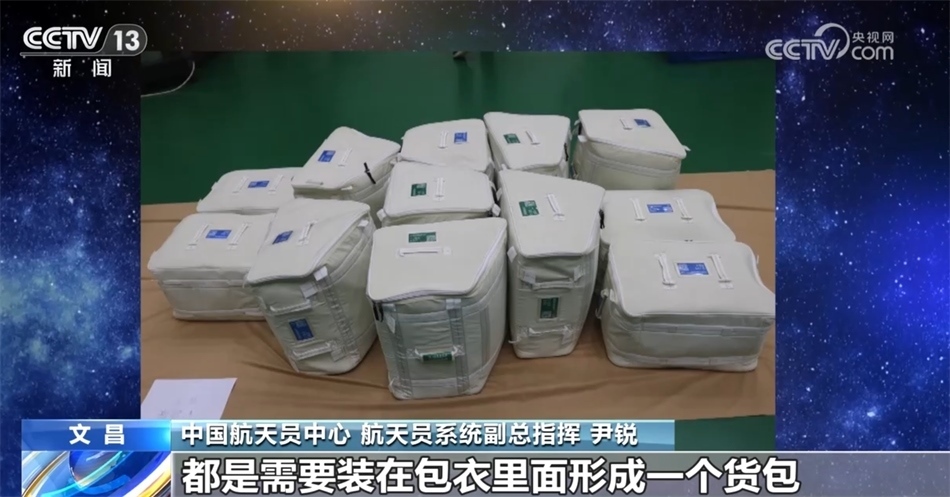 中國航天員中心 航天員系統(tǒng)副總指揮 尹銳:上行貨包外包裝的包衣,這個包衣里面添加了一些甲殼素的材料,讓它具有了一些抗菌防霉的作用。我們乘員的物資、航天員個人的裝備等以及環(huán)控生保的這些物資,都是需要裝在包衣里面形成一個貨包,然后整船進行交付。
