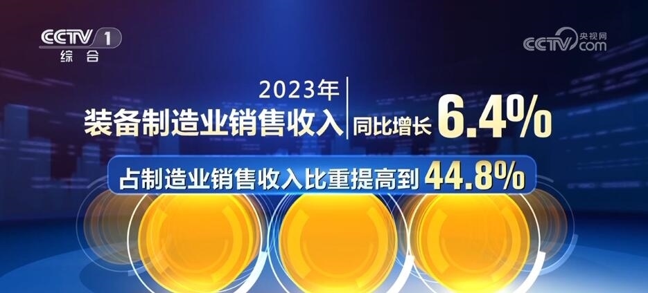 高端制造業(yè)發(fā)展持續(xù)向好,裝備制造業(yè)銷(xiāo)售收入同比增長(zhǎng)6.4%,占制造業(yè)銷(xiāo)售收入比重提高到44.8%。其中,電動(dòng)載人汽車(chē)、鋰離子蓄電池、太陽(yáng)能電池“新三樣”產(chǎn)品相關(guān)行業(yè)銷(xiāo)售收入合計(jì)同比增長(zhǎng)超過(guò)五分之一。