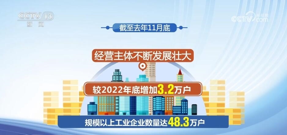 數(shù)據(jù)顯示,截至去年11月底,規(guī)模以上工業(yè)企業(yè)數(shù)量達48.3萬戶,較2022年底增加3.2萬戶,經(jīng)營主體不斷發(fā)展壯大。制造業(yè)PMI生產(chǎn)經(jīng)營活動預(yù)期指數(shù)自2023年10月連續(xù)3個月上升,全年指數(shù)均高于臨界點,制造業(yè)企業(yè)對發(fā)展信心穩(wěn)定恢復。
