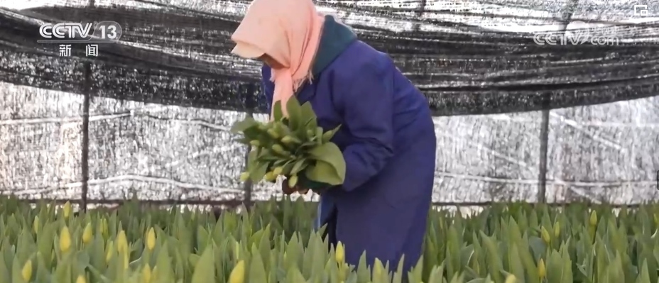 在銀川市興慶區(qū)的這個(gè)花卉基地,大棚里的郁金香、百合花含苞待放,工人們正在仔細(xì)挑選成熟的花苞,進(jìn)行裁切、整理、打包,準(zhǔn)備發(fā)往全國(guó)市場(chǎng)。