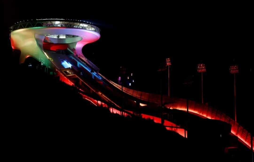 △國家跳臺滑雪中心外形如中國古代象征吉祥的如意,又名“雪如意”。
