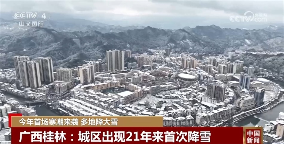 從21日到22日,廣西桂林市自北向南出現(xiàn)了一次大范圍的降雪天氣過程,桂林市城區(qū)更是出現(xiàn)21年來的首場(chǎng)降雪。