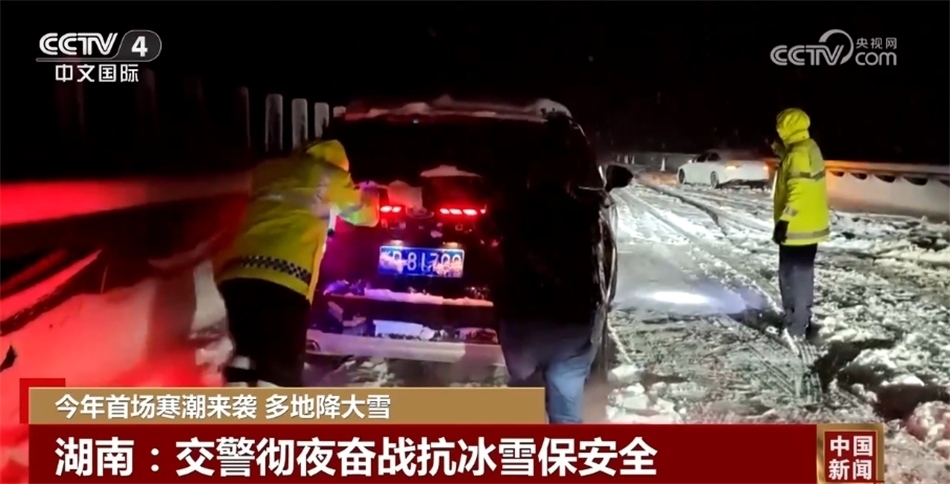 湖南西部、北部以及部分高海拔山區(qū)出現(xiàn)大雪,湖南交警徹夜奮戰(zhàn)抗冰雪,及時(shí)排除險(xiǎn)情,全力以赴保證公路安全暢通。在長(zhǎng)芷高速,因上坡路段積雪較深,部分小型汽車被困無法前行,婁底高速警察聯(lián)合司乘人員將百余臺(tái)車輛逐一推上坡道。