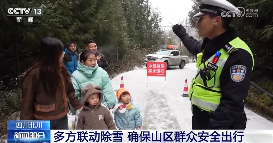 四川綿陽北川羌族自治縣近日迎來低溫降雪天氣,山區(qū)路段大范圍降雪和道路結(jié)冰現(xiàn)象明顯,為確保群眾往返交通順暢安全,當(dāng)?shù)毓膊块T組織基層民警在重要路口設(shè)卡執(zhí)勤,維護(hù)交通秩序。交警在各路段有序開展除雪防滑作業(yè),清掃路面積雪和冰塊。