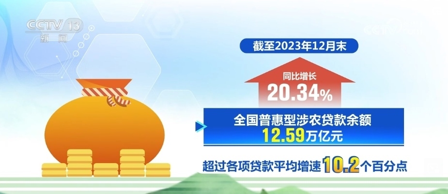 截至2023年12月末,全國普惠型涉農(nóng)貸款余額12.59萬億元,同比增長20.34%,超過各項(xiàng)貸款平均增速10.2個百分點(diǎn)。2023年,新發(fā)放普惠型涉農(nóng)貸款平均利率5.11%,同比下降0.87個百分點(diǎn)。