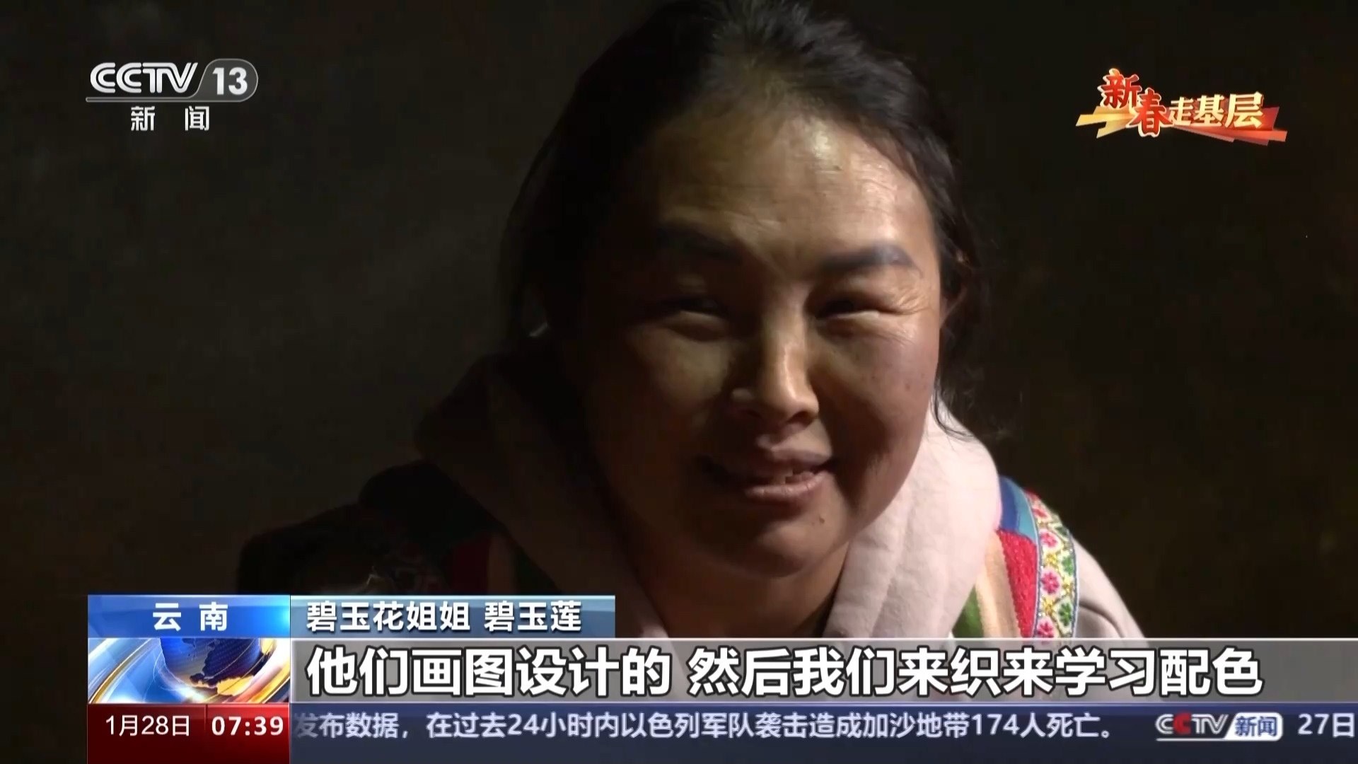 在獨(dú)龍江鄉(xiāng),記者見到了34歲的獨(dú)龍族婦女碧玉花,她和姐妹們春節(jié)前,要為客戶趕制一批獨(dú)龍?zhí)?。紗線剛剛運(yùn)來,她們就迫不及待地趕往河對(duì)岸的工作室。
