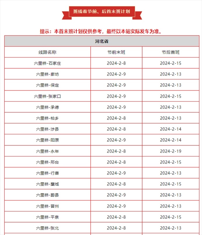北京六里橋客運主樞紐春節(jié)運營安排發(fā)布,具體如下: