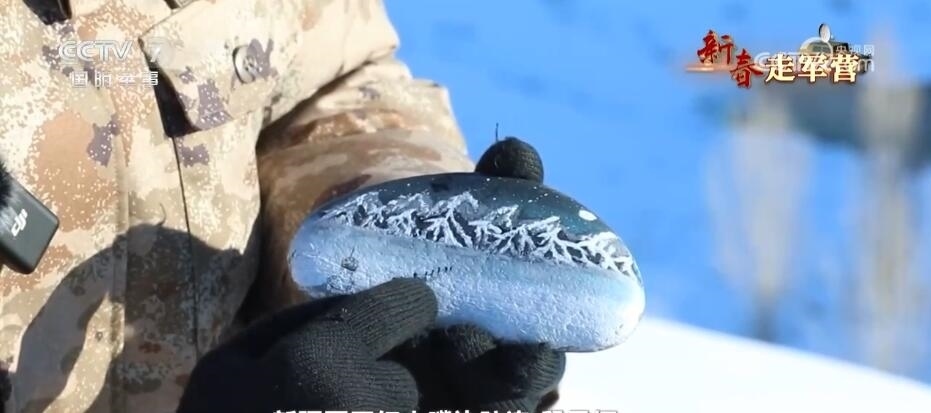 經(jīng)過40多分鐘的飛行,紅山嘴邊防連終于在皚皚白雪中露出了輪廓。直升機(jī)剛剛降落停穩(wěn),段昱恒就迫不及待地送上了自己的畫作。可他沒想到的是,連隊一直有著創(chuàng)作石頭畫的傳統(tǒng)。豐富的色彩勾勒出祖國的壯美河山,記錄著官兵的執(zhí)著堅守,而段昱恒的作品也成為連隊石頭畫作中最新的一幅。
