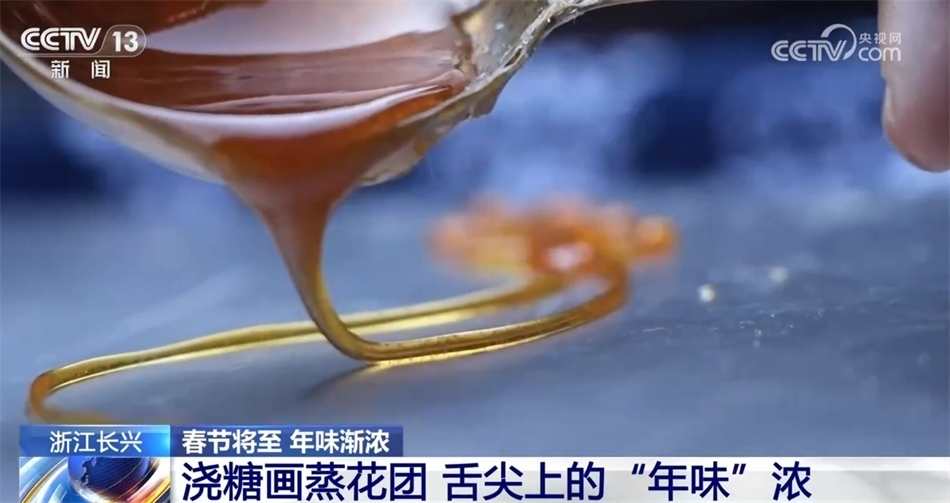 在浙江長(zhǎng)興方巖村,村民們剪窗花、寫(xiě)春聯(lián)、澆糖畫(huà),年味格外濃厚。糖畫(huà)師傅以勺為筆、以糖為墨,一個(gè)個(gè)栩栩如生的形象躍然眼前。