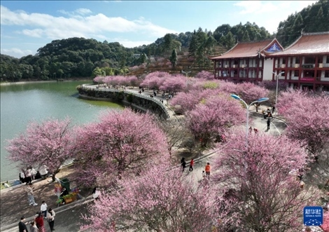 近日,位于福建省福州市晉安區(qū)壽山鄉(xiāng)的千年古剎林陽寺500余株梅花美麗綻放,吸引眾多游客前來賞梅游玩。